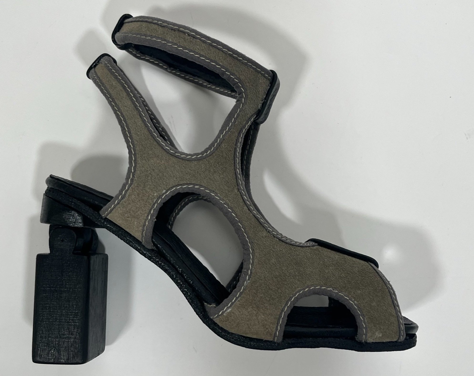 This high heel is designed intentionally for driving, featuring an adjustable heel allowing for a safer and more comfortable. The avant garde styling encourages the user to look fashionable while also creating a better experience while going on a drive.